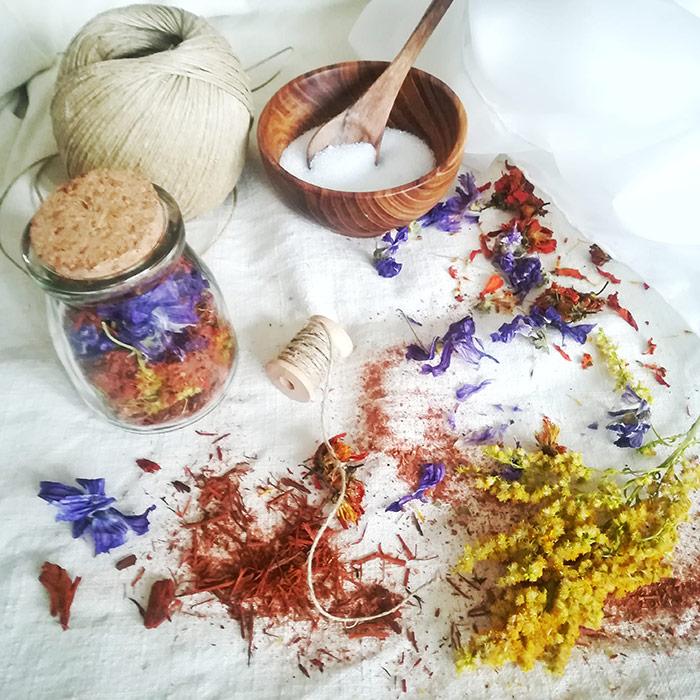 egzotikus és vadon termő festőnövényekkel színez meg természetes kelméket és szöveteket.