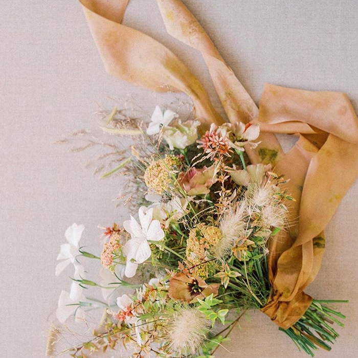 Ezen a workshopon számos természetes textilszínezési technikával megismerkedhetnek a résztvevők. Festőnövényekkel egyszínűre vagy színátmenetesre megfestünk fejenként egy darab 3 méter hosszúságú pamutgézt, amely csodás asztaldísze és kiegészítője lehet egy ünnepi asztalterítéknek. Ezen kívül színfoltokkal és növényi lenyomatokkal megmintázunk fejenként 2 x 2m hernyóselyem szalagot, ami menyasszonyi vagy alkalmi csokrok díszítésére használható. A résztvevők a nap folyamán megismerhetik a textil választás szempontjait, a kelmék és szövetek előkészítésének módszereit, továbbá a merítéses, színátmenetes, színfoltos és ún. ökonyomat avagy ecoprint technikát is, amely során ezúttal eukaliptusz levelek lenyomatát gőzöljük majd a kelmébe - ez egy izgalmas módja egy-egy virágcsokor újrahasznosításának és megörökítésének, legyen szó egy menyasszonyi csokorról, egy virágos emlékről vagy egy fontos alkalom virágairól.